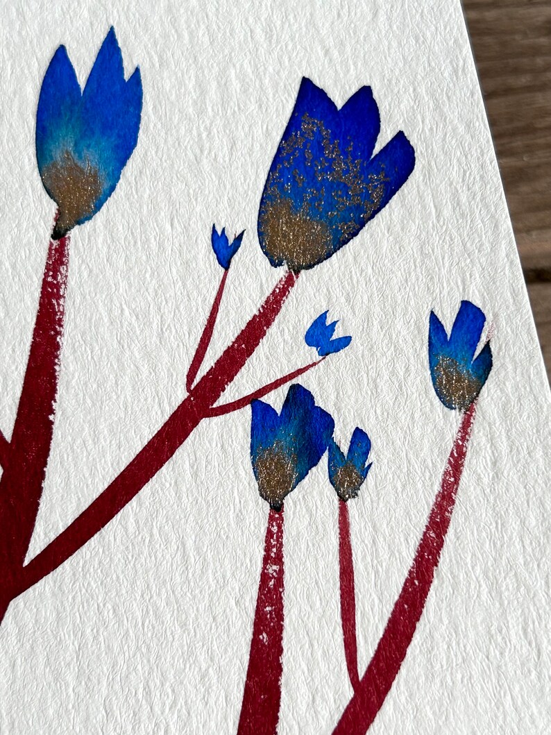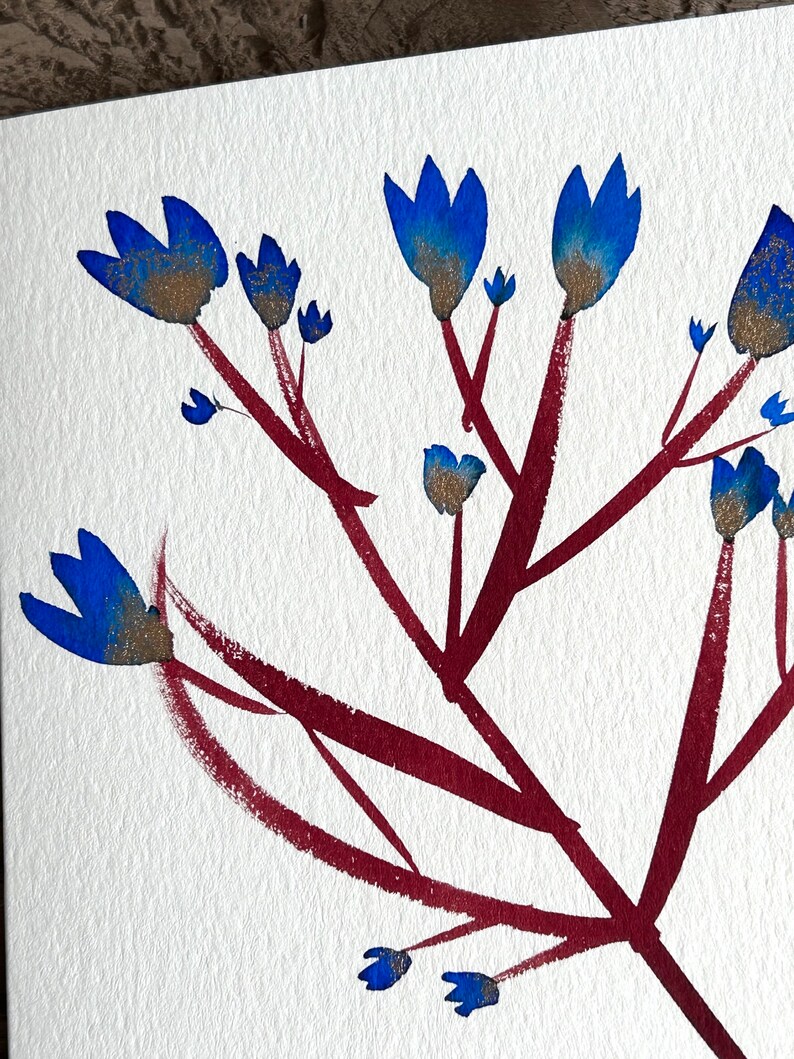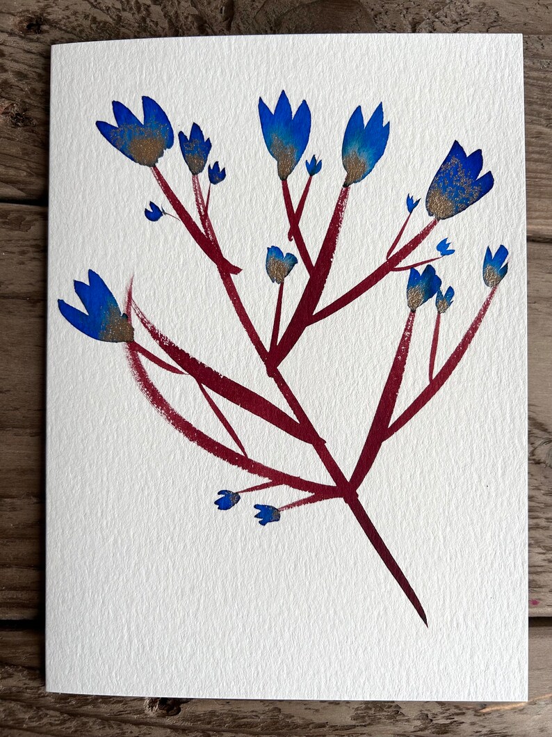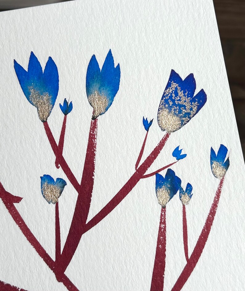 Handmade card- Only one painted- this is the original artwork not a printed card. I painted using inks with a touch of gold watercolour paint. This card would also look great framed! SIZE 5” x7” . Envelope included