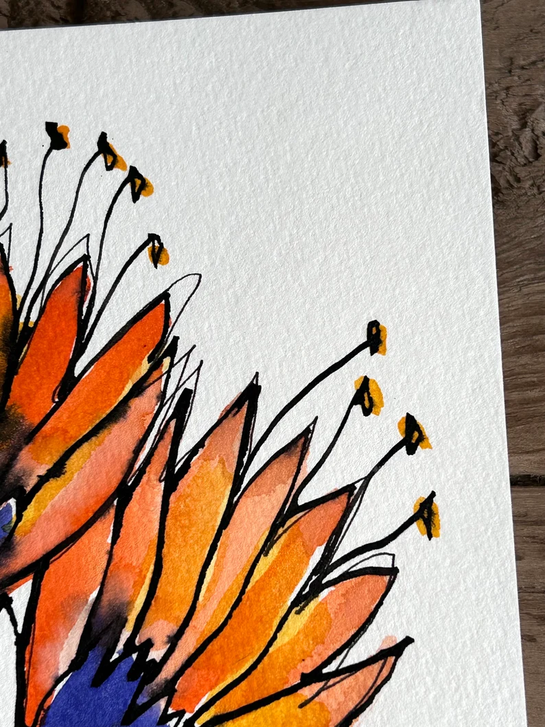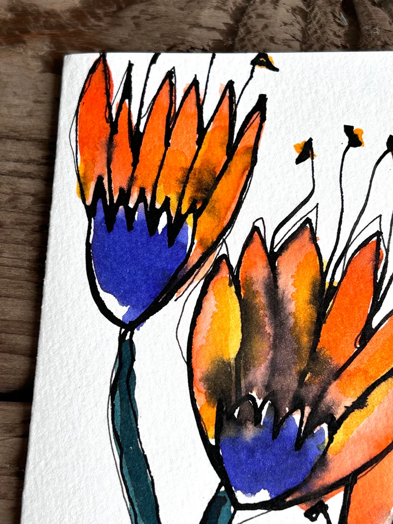 Handpainted Greeting Card in Inks – Abstract Flowers