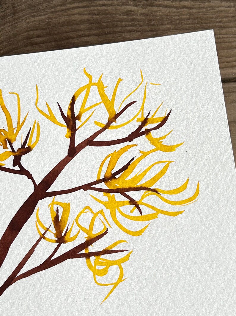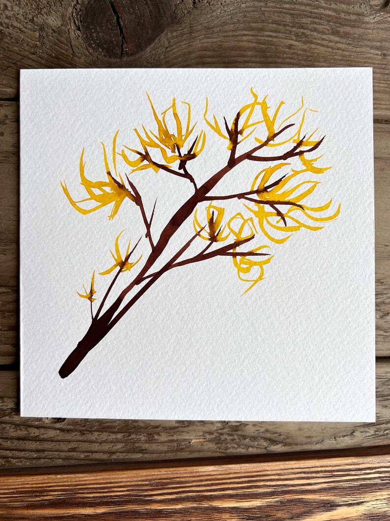 A beautiful handmade card. Hand painted yellow floral design. Only one made! This is the original painted card not a print. Painted on textured watercolour card with envelope included. Also beautiful to frame ! SIZE 6” x 6”