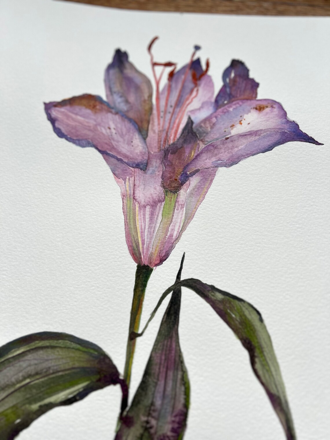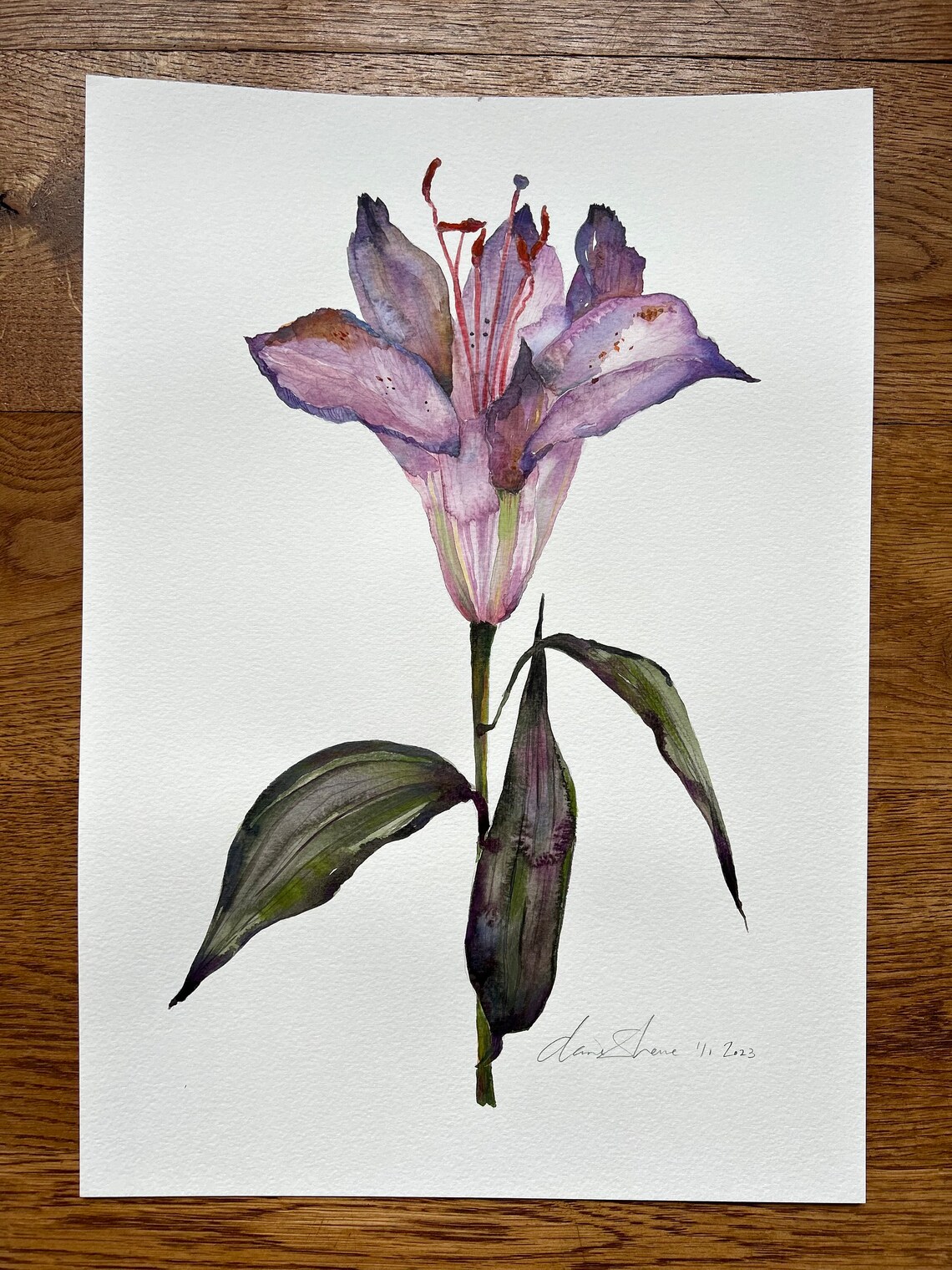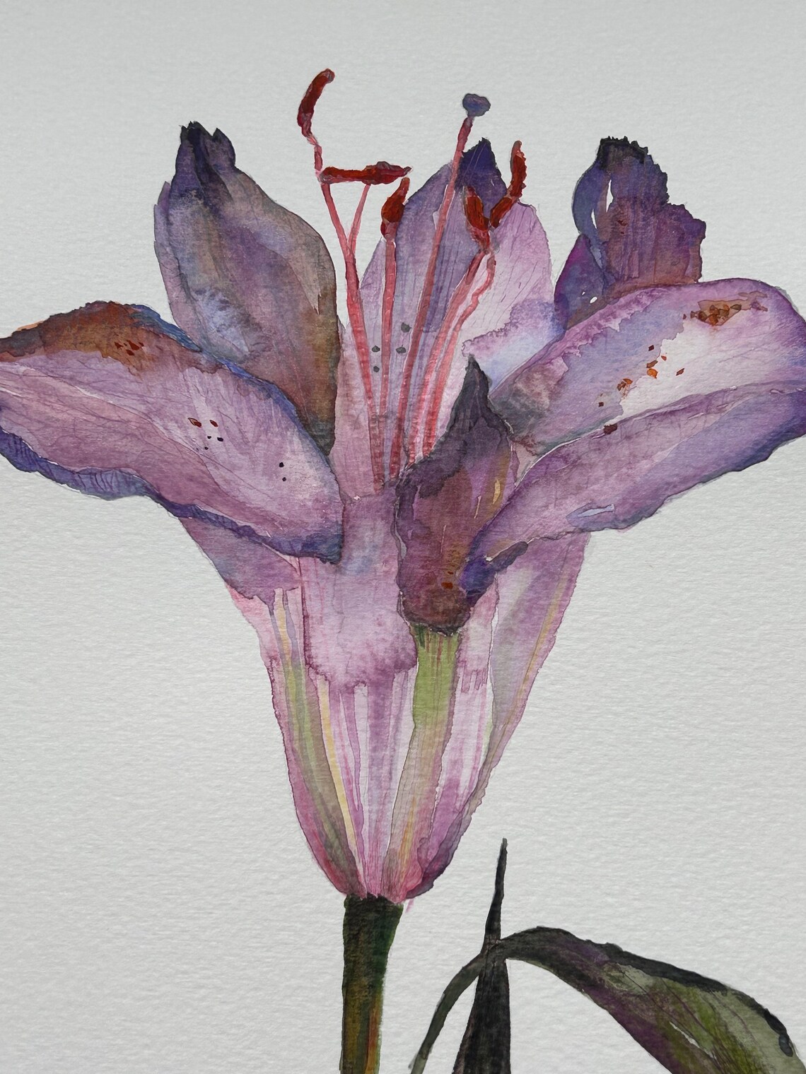 Original Watercolour Painting Purple Lily Flower